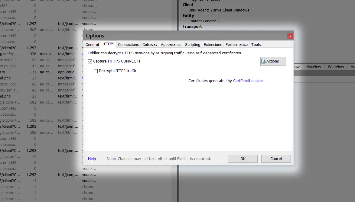 进入如下界面,勾选【Capture HTTPS CONNECTS】