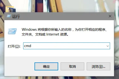 然后输入cmd点击确认,打开命令行輸入ipconfig