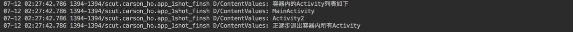 // 此处采用 LinkedList作为容器,增删速度快 public static LinkedList<Activity> activityLinkedList; @Override public void onCreate() { super.onCreate(); activityLinkedList = new LinkedList<>(); registerActivityLifecycleCallbacks(new ActivityLifecycleCallbacks() { @Override public void onActivityCreated(Activity activity, Bundle savedInstanceState) { Log.d(TAG, "onActivityCreated: " + activity.getLocalClassName()); activityLinkedList.add(activity); // 在Activity启动时(onCreate()) 写入Activity实例到容器内 } @Override public void onActivityDestroyed(Activity activity) { Log.d(TAG, "onActivityDestroyed: " + activity.getLocalClassName()); activityLinkedList.remove(activity); // 在Activity结束时(Destroyed()) 写出Activity实例 } @Override public void onActivityStarted(Activity activity) { } @Override public void onActivityResumed(Activity activity) { } @Override public void onActivityPaused(Activity activity) { } @Override public void onActivityStopped(Activity activity) { } @Override public void onActivitySaveInstanceState(Activity activity, Bundle outState) { } }); } public void exitApp() { Log.d(TAG, "容器内的Activity列表如下 "); // 先打印当前容器内的Activity列表 for (Activity activity : activityLinkedList) { Log.d(TAG, activity.getLocalClassName()); } Log.d(TAG, "正逐步退出容器内所有Activity"); // 逐个退出Activity for (Activity activity : activityLinkedList) { activity.finish(); } // 结束进程 // System.exit(0); }}// 记得在Manifest.xml中添加<application android:name=".Carson_BaseApplicaiton" ....</application>