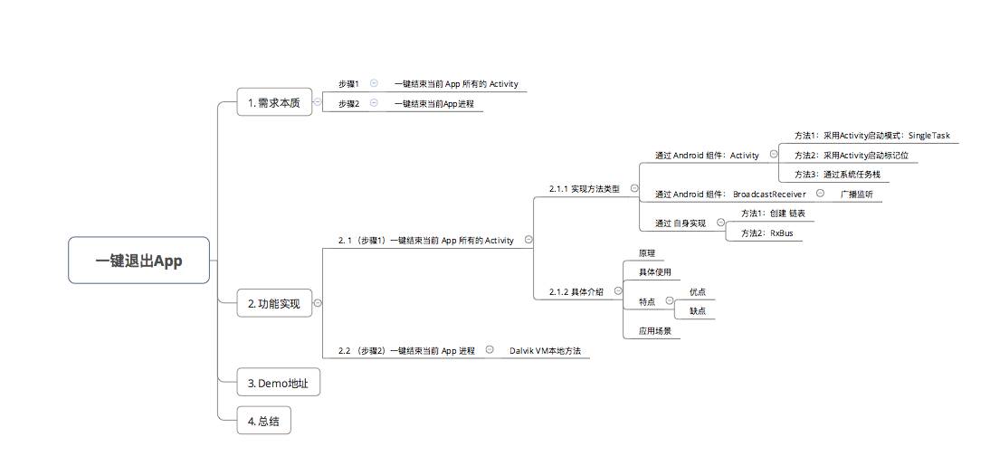 即 需要2个步骤 才可 完成 一键退出 App 需求。下面,我将根据这两个步骤进行功能实现讲解。