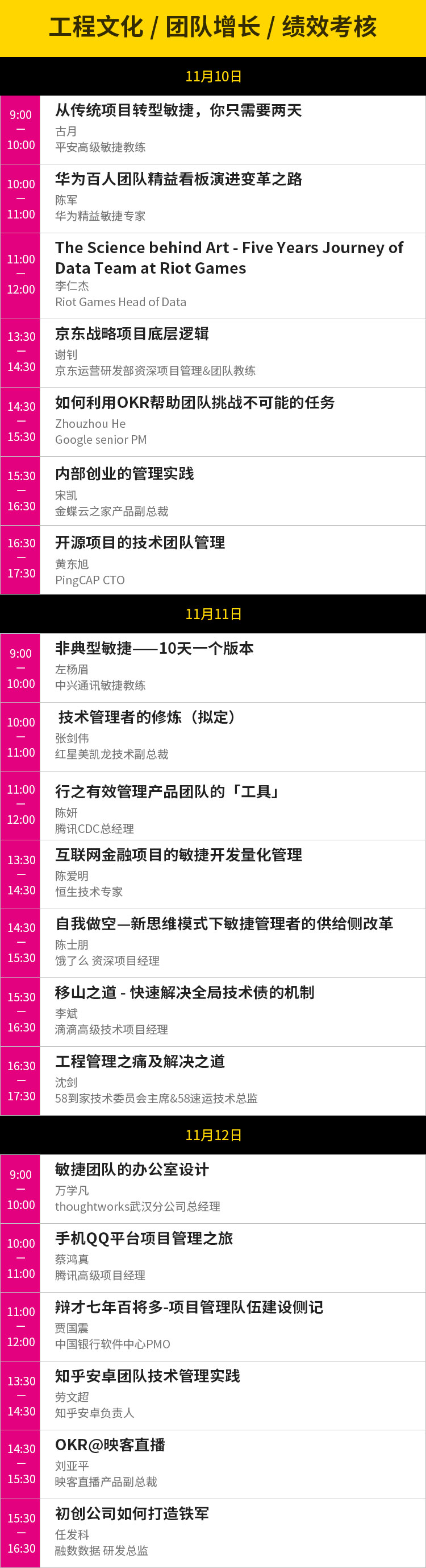 11月9-12日 北京国家会议中心,耿新跃老师将担任第六届壹佰案例峰会团队专场的联席主席,现场解读工程文化/团队增长/绩效考核方向的经典案例。