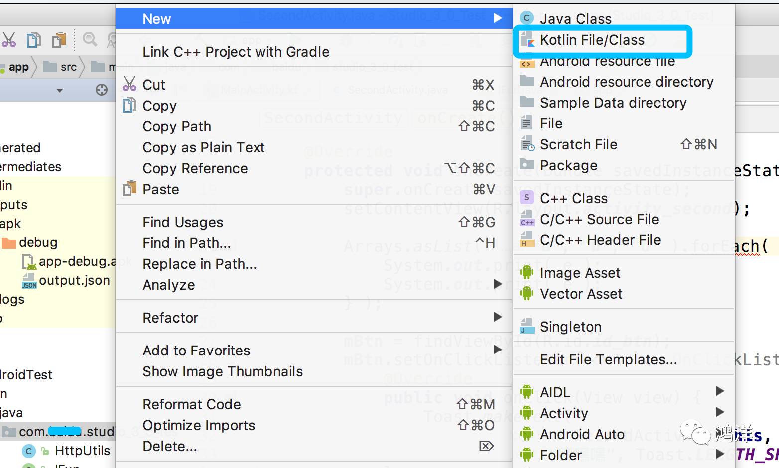 也可以在以前的项目中,直接New Kotlin File: