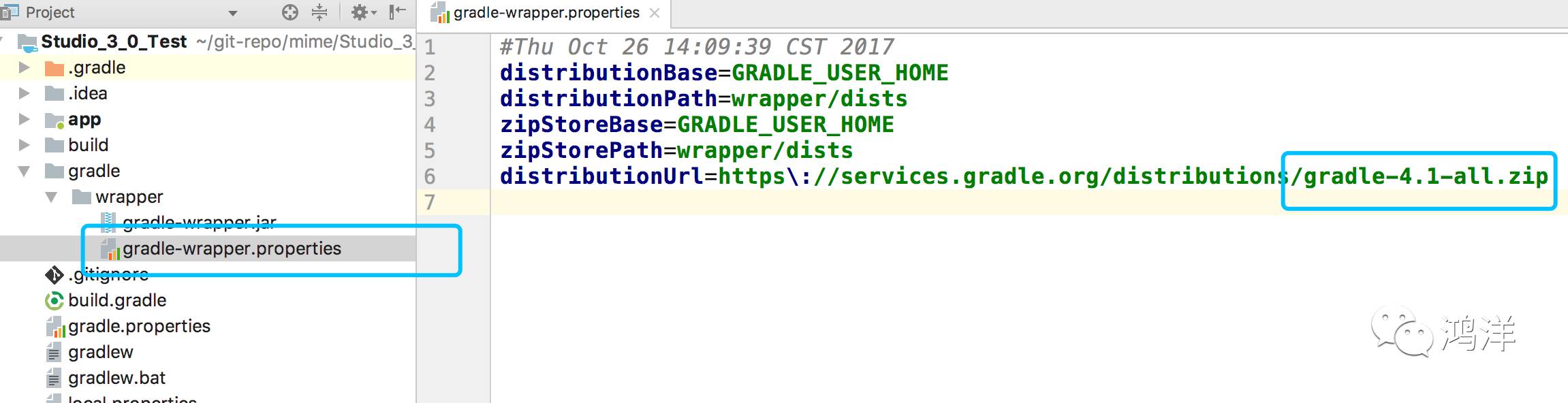 点击gradle-wrapper.properties,修改gradle文件为4.1。
