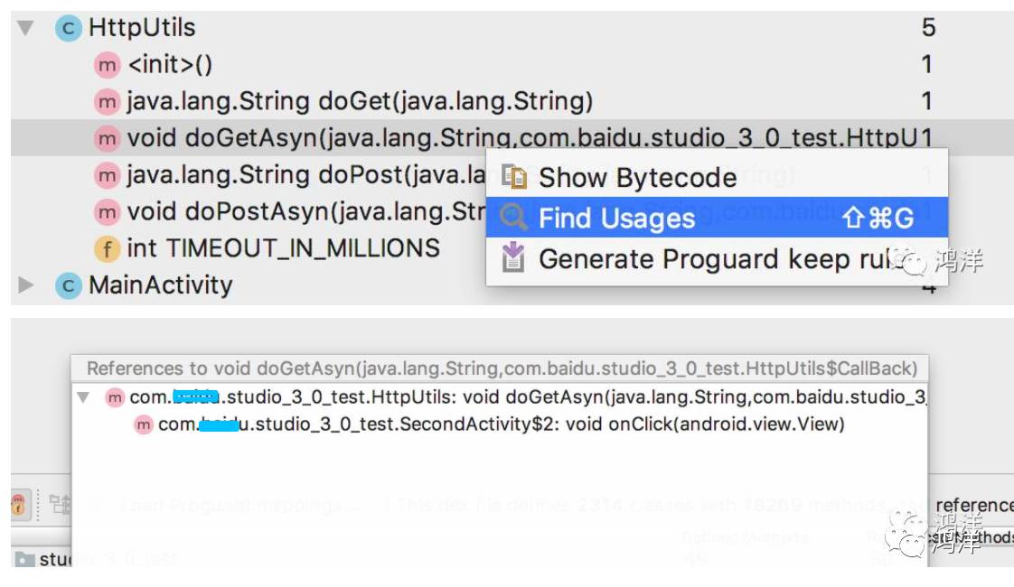 直接查看某个方法的引用情况: