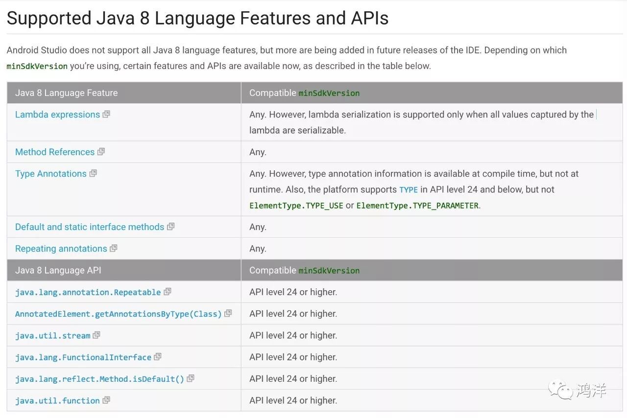 当然并非所有的特性都支持所有版本了,还是有部分特性需要在24以上才能支持: