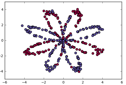 plt.scatter(X[0, :], X[1, :], c=Y, s=40, cmap=plt.cm.Spectral);