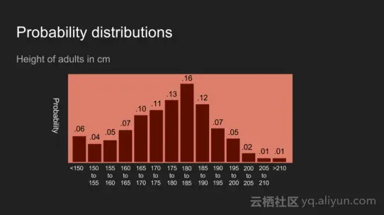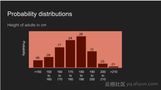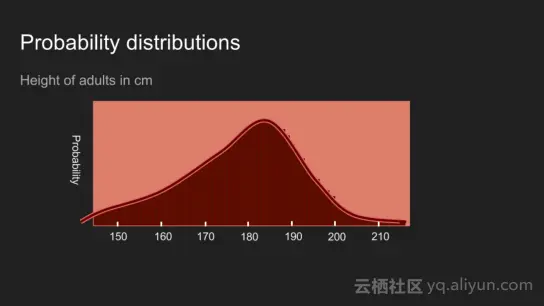 毫不奇怪的是你还可以对收集的数据保持信念。考虑在美国成年人的高度。你对他们身高的信念看起来像上面的图片。这说明一个信念,即这个人大概是在150和200厘米,180和190厘米的可能性最大。