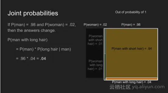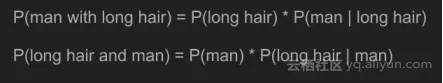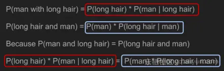 记住是如何计算联合概率后,可以写出等式P(男性长头发)和P(长头发和男性)。因为联合概率是可逆的,这两样东西是相等的。