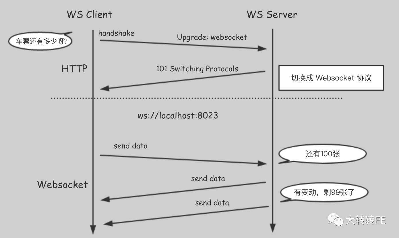 Websocket在连接之后,客户端可以主动发送消息给服务器,服务器也可以主动向客户端推送消息。比如:预订车票信息,除了我们发请求询问车票如何,当然更希望如果有新消息,可以直接通知我们。