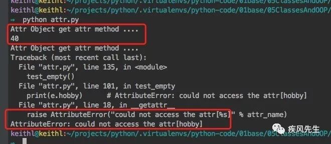 print(e.hobby) # AttributeError: could not access the attr[hobby]if __name__ == '__main__': test_empty() >>> python attr.py # 2.x & 3.x表示结果一样,以下都会以此标记