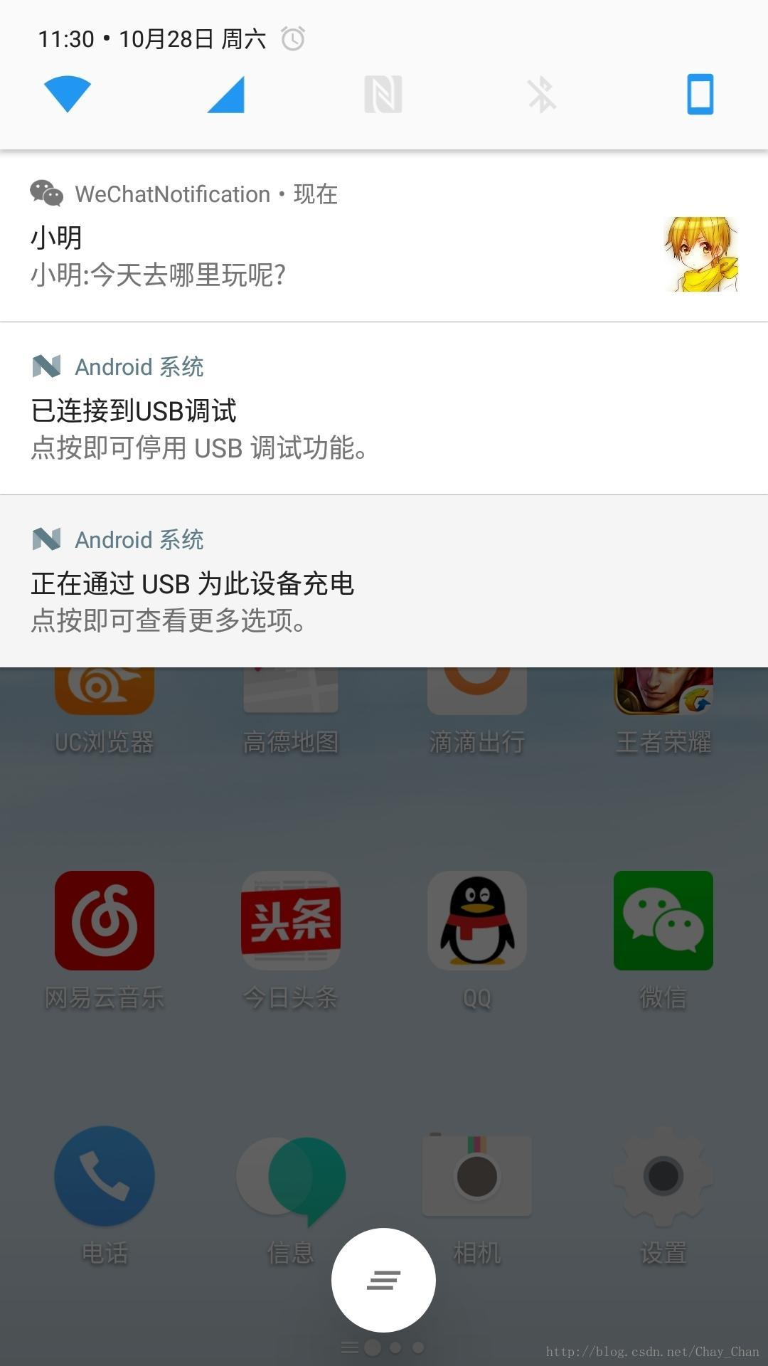 通知栏的小图标建议使用纯白色,在通知栏显示的时候就是白色,拉下来的时候就会变成灰色的
