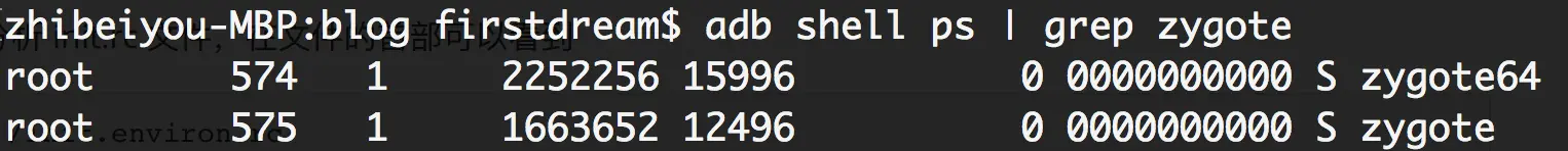 这说明手机会启动两个 zygote 进程,对应的执行程序分别是 app_process64 (主模式)、app_process32,通过 adb shell ps | grep zygote 可以看到确实存在两个 zygote 进程