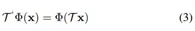 即使用变换矩阵 T (·) 转换输入 x,然后将其传送至网络或层Φ(·),其结果和先将 x 映射到网络再变换映射后的表征结果一致。