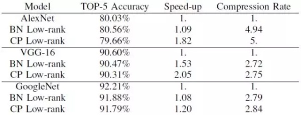 表 2. 低秩模型及其基线模型在 ILSVRC-2012 数据集上的性能对比。