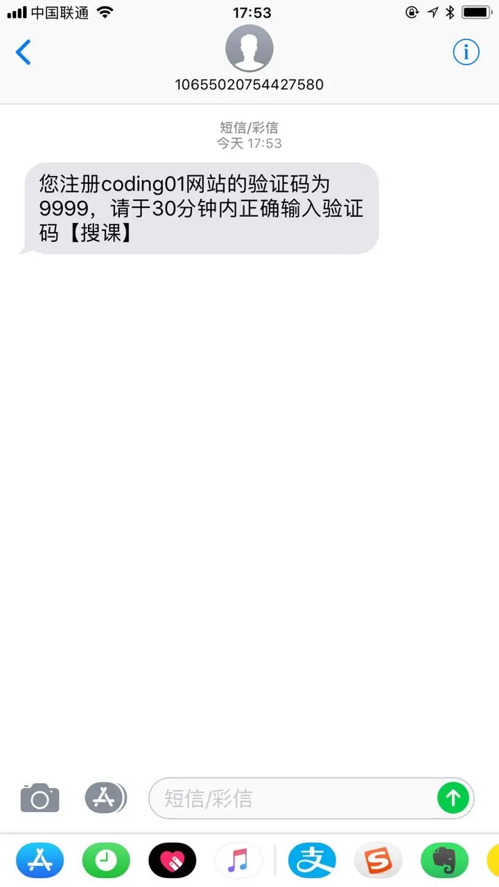 [2017-10-29 09:53:14] local.INFO: {"resp":{"respCode":"000000","templateSMS":{"createDate":"20171029175314","smsId":"24a93f323c9*****8608568"}}}最后收到短信信息: