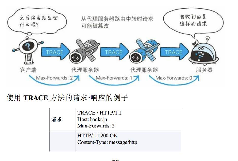 TRACE :追踪路径。挺有意思的一个东西。可以计算代理服务器有多少个,但是容易引发xst攻击(好想学web安全)。不常用