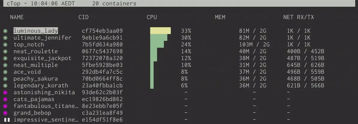1、ctop:实现了类 top 命令展示效果的 docker 容器监控工具
