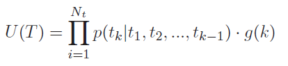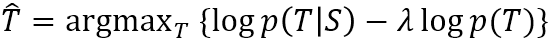 直观的来看,这个式子对上一式子做出了一定的惩罚,即减去了一项。而被减去的这一项恰好是T本身的概率,乍一看这个模型非常的好,同时考虑了生成最大概率的下文以及该下文本身出现的概率。这里引入一个参数稍稍将式子进行变形,得到: