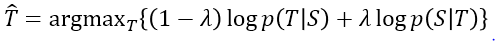 即通过这个参数我们可以人为控制对T概率的惩罚力度,我们将使用该式子作为目标函数的模型记为MMI-antiLM。有过概率论基础的同学也不难发现,如果我们引入条件概率公式: