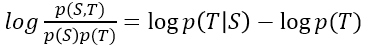 其中S为上文序列,T为下文序列。从这个式子本身就可以看出其无法过滤一些高频率的下文T。于是这里引入最大交互信息(MMI),即: