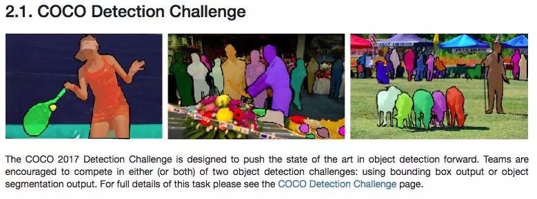 MS COCO (Microsoft Common Objects in Context,常见物体图像识别) Challenge 是继 ImageNet(已停办)之后,计算机视觉领域最受关注和最权威的比赛之一,是图像(物体)识别方向最重要的标杆(没有之一),也是目前国际领域唯一一个能够汇集 Google、Microsoft、Facebook 三大巨头,国际顶尖院校以及优秀创新企业共同参与的大赛。与关注整体图像的 ImageNet 图像分类任务相比,COCO 中的物体检测任务更关注的是图像中出现的每个物体的个体(比如各种小物体,各种遮挡物体),因此要求算法对图像细节有更好的理解。这个比赛也代表了继 ImageNet 后的图像识别的最高水平。