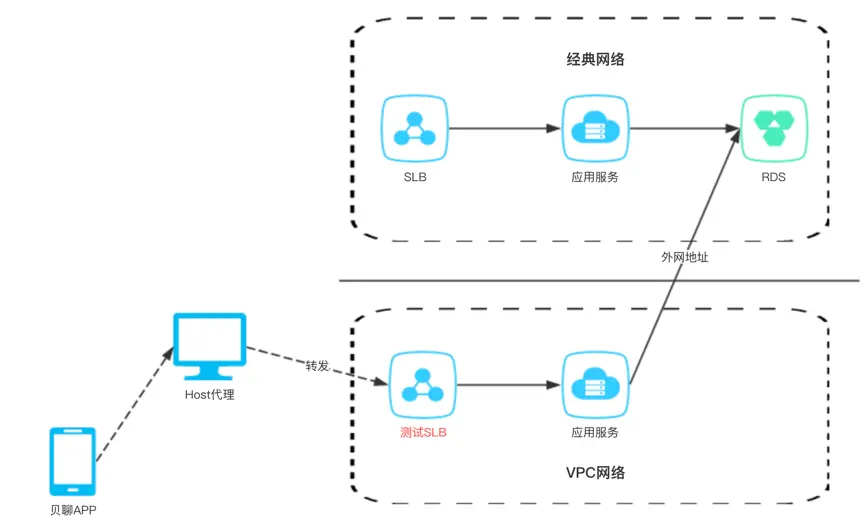 为了规避风险,我们采取使用“提前部署和测试”方案,即提前在VPC服务器部署所有的服务,并对该服务进行测试验证,由于服务只对贝聊内部请求白名单开放,不会影响线上用户的使用。