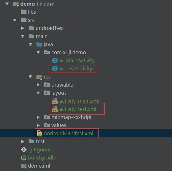 TestActivity和activity_test都是我们通过模板自动生成的文件,并且mainfest中已经注册了这个activity了,具体截图就不放了,大家可以自己尝试。
