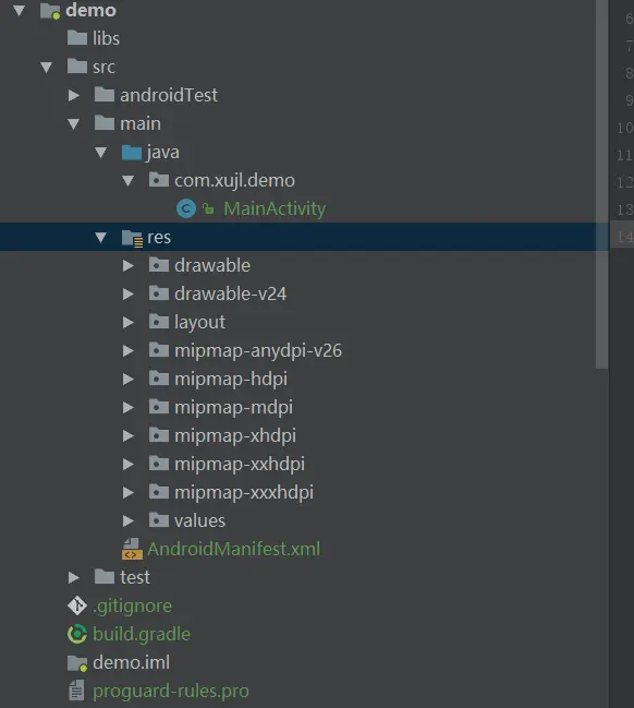 非常简单,只包含了一个默认的自动生成的MainActivity类