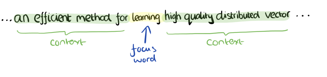 训练的目标是最大限度地观察实际输出词(焦点词)在给定输入上下文且考虑权重的的条件概率。在我们的例子中,给出了输入(“一个”,“有效”,“方法”,“为”,“高”,“质量”,“分布式”,“向量”)我们要最大限度地获得“学习”作为输出的概率。