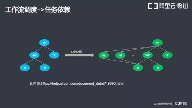 我们设计的任务是离线的,每天会在12点的时候把设计的任务变成一个实例快照。目前我们的任务依赖在业内也是最先进的。