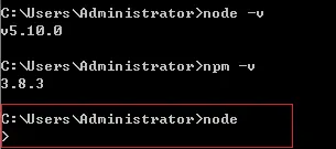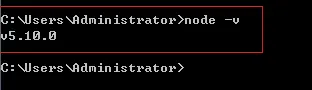 3、检验是否安装成功,在Windows环境下,打开命令提示符,输入node – v,如果正常就会出现版本号的输出。