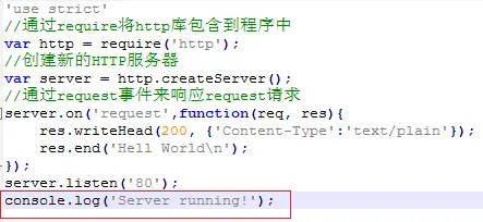 代码以及很完美了,但,为了方便在nodeJS交互环境下运行该js文件后,知道服务器已经启好了,我们还是打印一条日志吧。