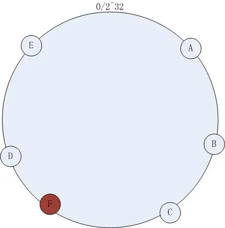 - 如果增加一个节点, 会初始化该节点到现有的环上, 比如加入了节点F, 初始该节点后集群状态如下
