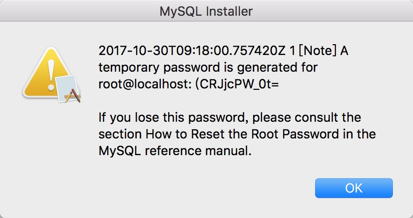 下载mysql的安装包,安装完成后,它会随机的给你一个本地root的密码,但是臭长臭难记,root@localhost:后面的就是密码,太特么恶心了