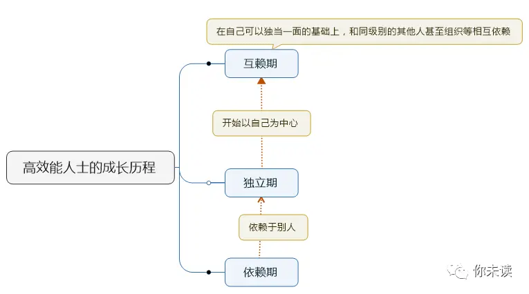 概括:从依赖到独立,主要是个人成功,这期间有三个重要的习惯:「积极主动、以终为始、要事第一」