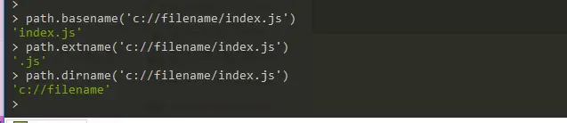 这三个方法分别返回的是路径最后一个部分,extname顾名思义返回扩展名,dirname是返回目录名。