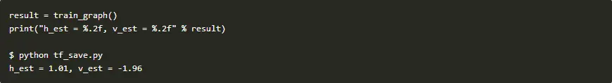在下面的例子中,我们将加载模型,并打印出我们的两个系数(h_est和v_est)的数值。数值如预期的那样,我们的模型已经被成功地恢复了。