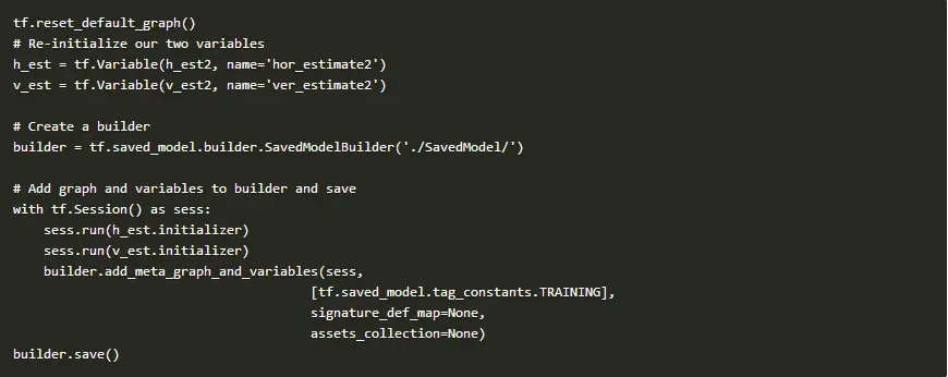 接下来我们尝试使用SavedModelBuilder类完成模型的保存。在我们的示例中,我们不使用任何符号,但也足以说明该过程。