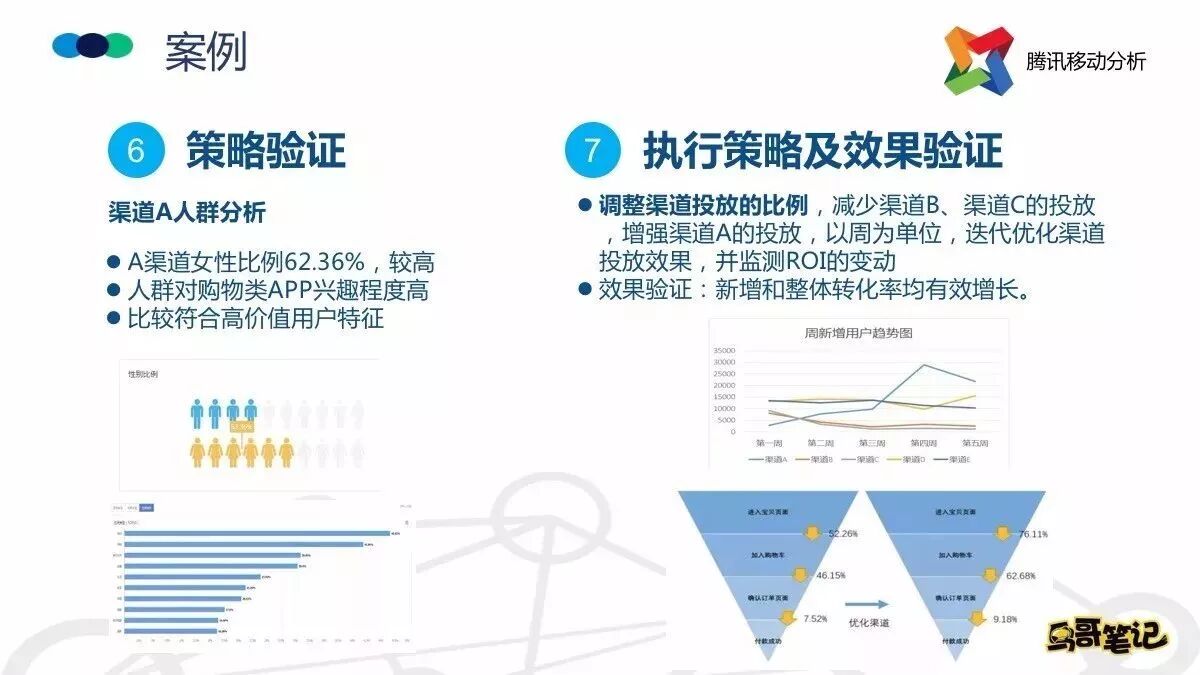 在执行完之后观察数据,发现整个新增有一定的增长,可以看到最终的转化率从7.52%提高到9%。这就是一个完整的数据分析、策略制定、行动的案例。