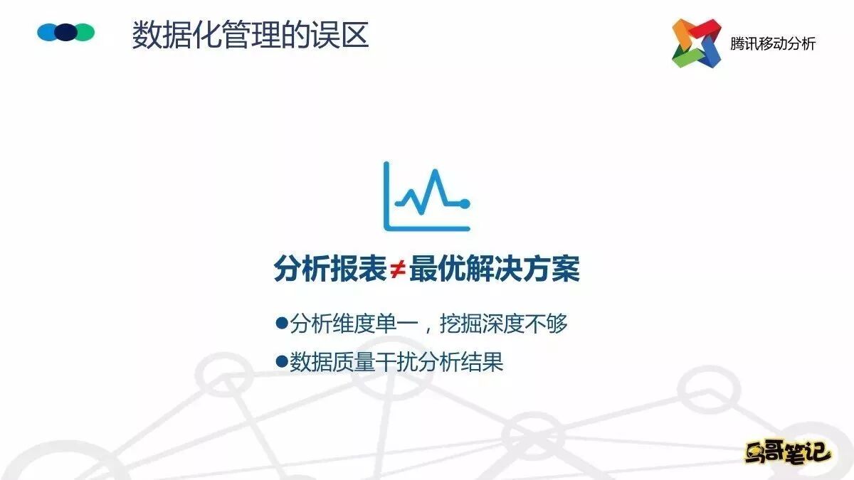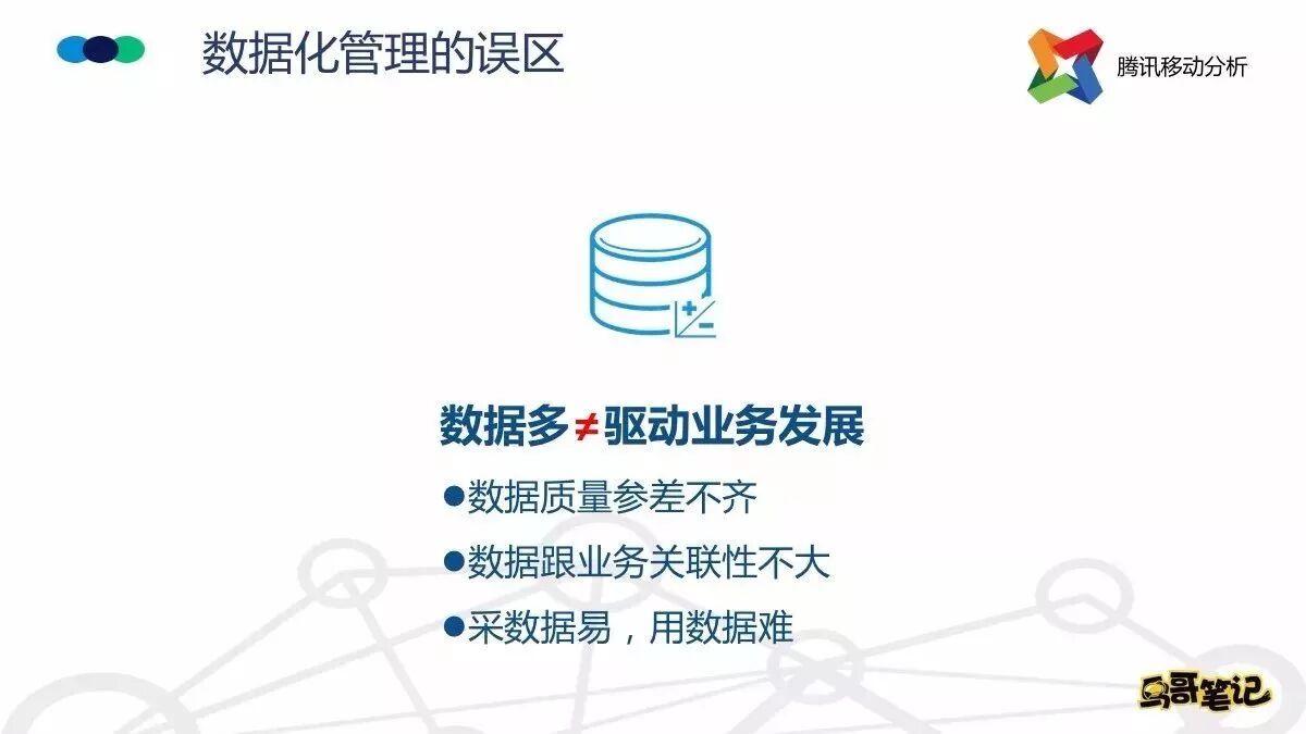 第三是采数据易,用数据难。腾讯做了这么多年,有自己的一套数据分析体系和方法论。但是刚建立这套系统时,也要长时间的训练、实践、一次次迭代,最终才能达到好的效果。很多像移动、银行以及一些传统企业,他们有很多数据,但是不知道怎么用,这是个大问题。