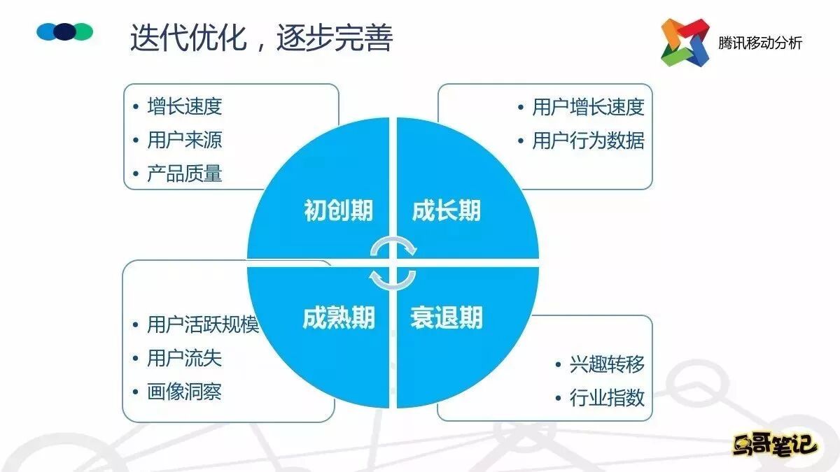 到衰退期数据指标不再增加了,我们做过很多测试,用户一旦流失,很难再挽回,所以不如看看用户兴趣转移到哪,然后开拓新的业务。