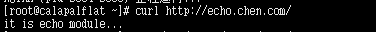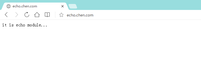 server{ server_name echo.chen.com; listen 80; location /{ default_type 'text/html'; echo "it is echo module..."; } } - 注: 如果没有这个default_type,浏览器访问则会一直下载文件而不是输出在浏览器上