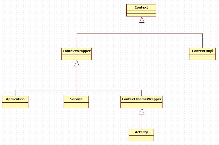从图中可以看出,Context的两个直接子类是ContextWrapper和ContextImpl,从这两个类的类名大概能猜出它们的功能:ContextWrapper类主要是对Context的功能封装,ContextImpl类则是对Context的功能实现,到这里我们的思路就明朗了,既然ContextImpl是Context的实现类,那么