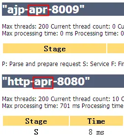 如何知道容器使用的是何种 connector 实现?启动 tomcat 后,访问 Server Status Page,看到如下信息即可知道使用的是何种 connector: