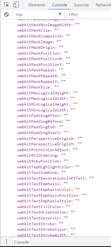 var sty = document.createElement("div").style通过chrome控制台打印出来是这样的(ps: 不同浏览器结果不同)