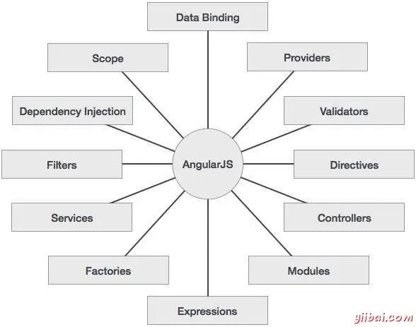 下图描述了AngularJS,我们将详细的后续章节讨论一些重要的部分。
