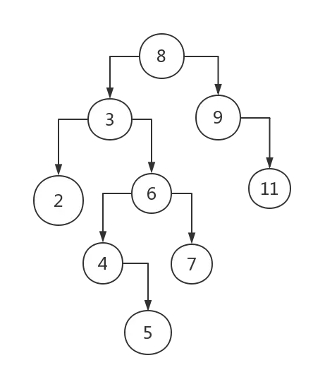 let nodes = [8,3,6,4,9,11,2,5,7];结构如下