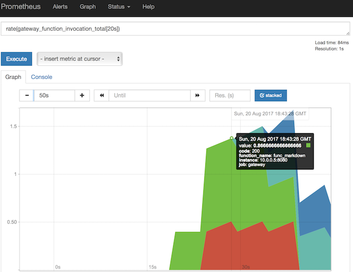 http://192.168.0.25:9090/graph?g0.range_input=15m&g0.stacked=1&g0.expr=rate(gateway_function_invocation_total%5B20s%5D)&g0.tab=0&g1.range_input=1h&g1.expr=gateway_service_count&g1.tab=0