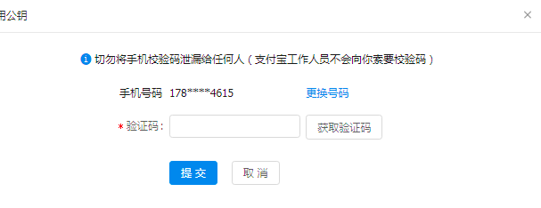 这一步需要发送验证码给账号的绑定手机号,收到验证码后填写提交。