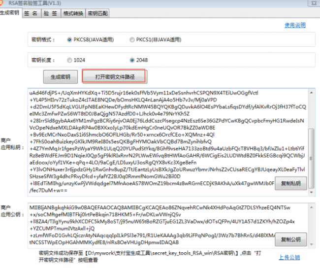 完成后点击:打开密钥文件路径找到生成的2048密钥txt文件